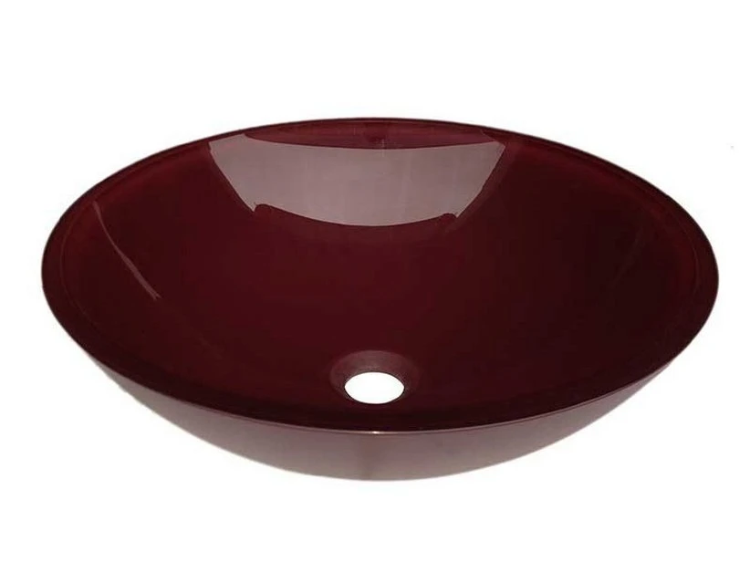 Lavabo a ciotola in cristallo extra chiaro temperato, ø 42 H14 cm, installazione in appoggio, senza foro troppo pieno. finitura rosso