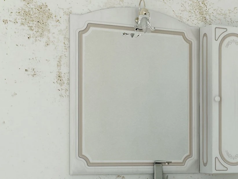 MATISSE specchio con cornice in legno cm. 80×100 bianco decape’ con un foro frontale centrale per lampada applique (non inclusa).